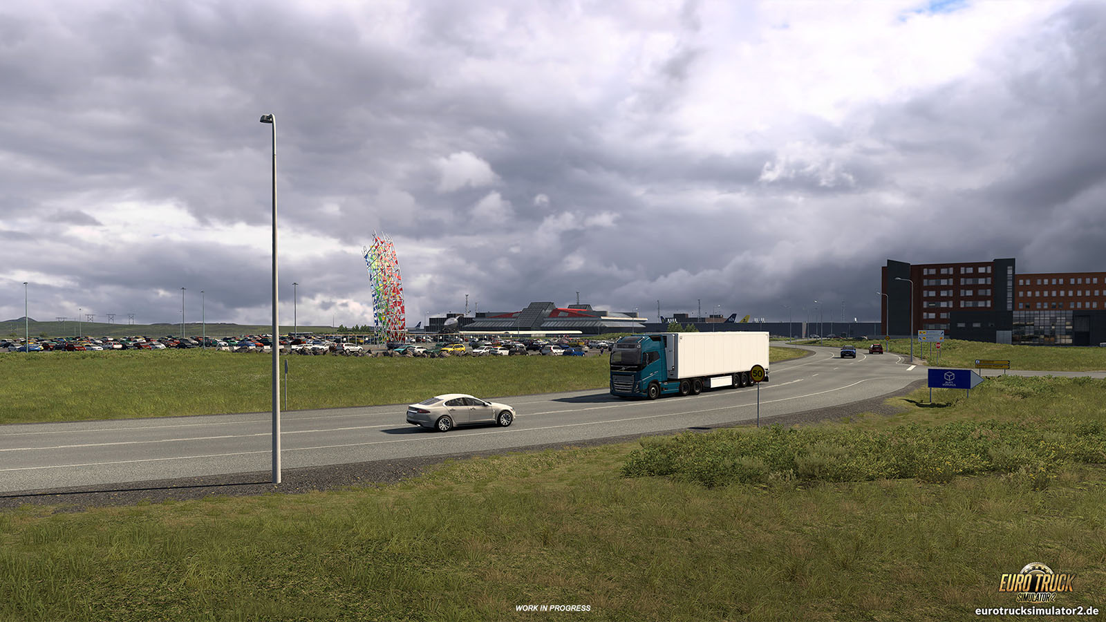 Mach Dich bereit für einen Abstecher an die Küste Islands, denn mit dem kommenden DLC für den Euro Truck Simulator 2 führt Dich Deine Reise auch nach Keflavík. Die Stadt liegt auf der Reykjanes-Halbinsel und spielt eine wichtige Rolle für den Verkehr und die Logistik des Landes. Für die meisten Reisenden wiederum ist Keflavík der erste und letzte Eindruck von Island, denn dort ist der internationale Flughafen gelegen, der als wichtigstes Drehkreuz des Landes gilt und daher natürlich auch in der ETS2-Umsetzung nicht fehlen darf. Hier wirst Du Fracht abholen oder hinliefern können, während Du das Terminal bereits aus der Ferne sehen kannst.